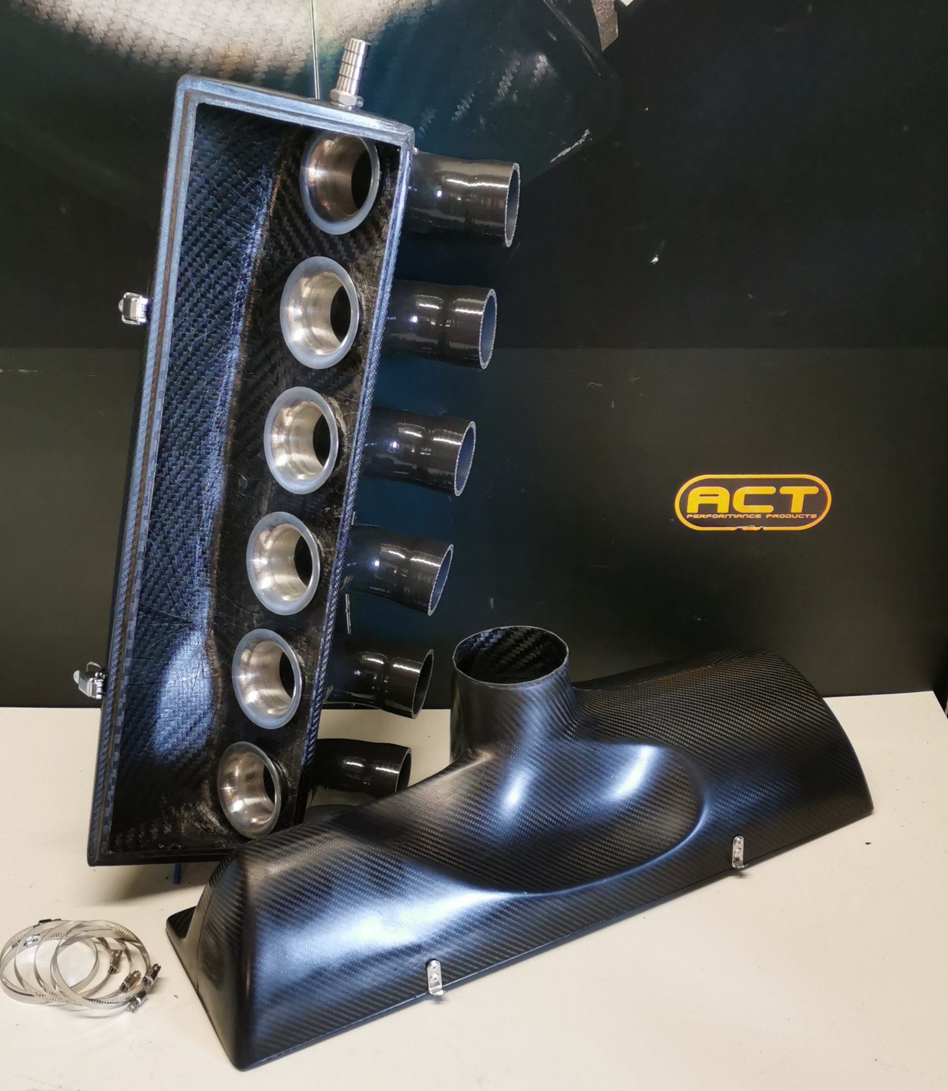 With fluoro lined/fuel resistant silicone induction hoses, full stainless hose clips and stainless fittings.
